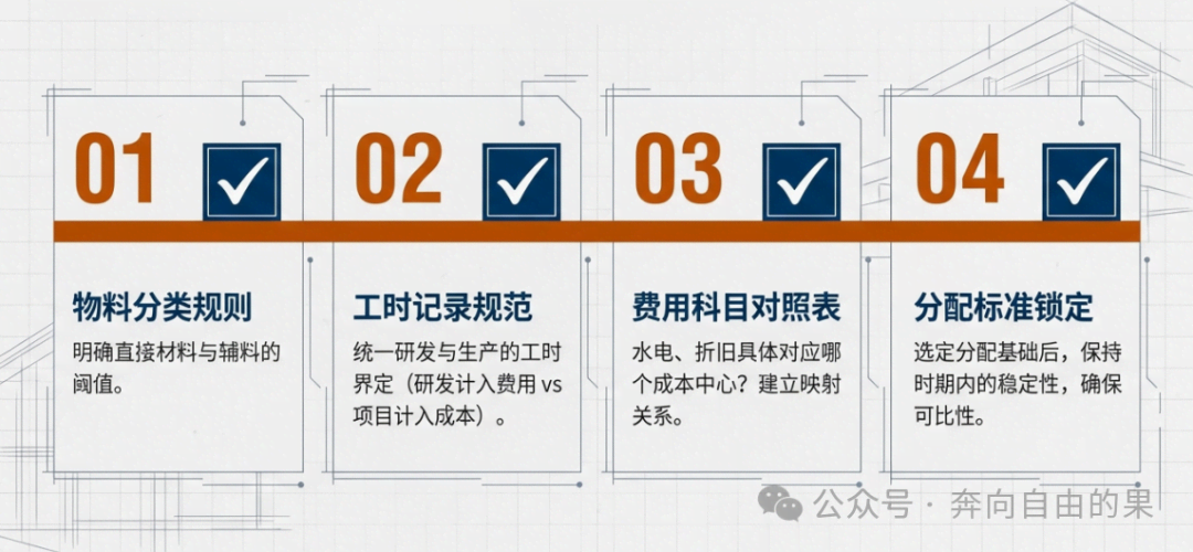 理论清晰了,落地则需要一套成文的规范。建议你主导或推动财务部制定一份《成本核算细则》,明确以下几点: