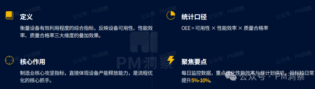 可用性反映设备是否正常开机,性能效率反映设备是否满负荷运行,质量合格率反映设备产出是否合格。