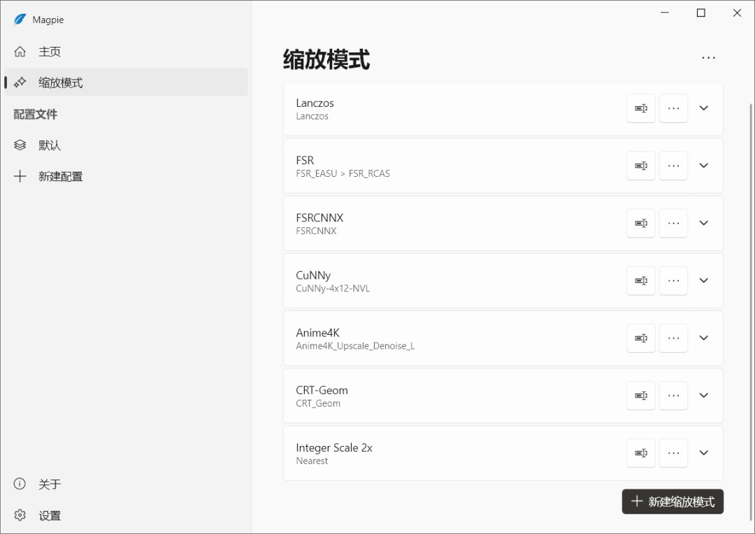 Magpie:一款轻量型窗口缩放工具,支持Win10和Win11使用,完全免费,便捷免安装,内置 Lanczos、FSR、CuNNy和Anime4K等7种算法。