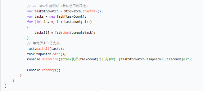2.控制 Task 数量:即使使用 Task,也不要无限制创建,可通过ParallelOptions设置最大并行度(建议等于 CPU 核心数);