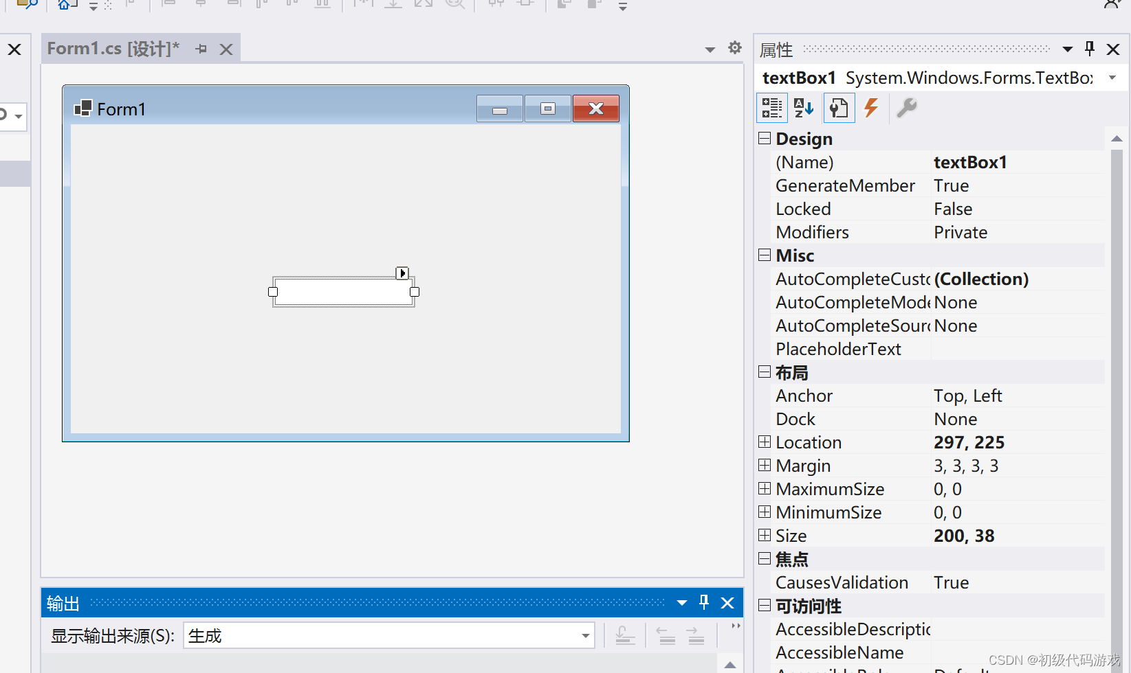 默认的名字是textBox1,以后要用这个名字来选择控件设置属性。