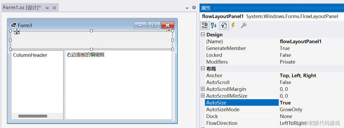 Anchor改一下,改成三面锁定,如上图,“Top,Left,Right”。再将AutoSize设置为“True”,大小会根据内容自动变化。与缩放相关的选项可能会互相干扰,上面的操作是在默认属性基础上改两个,如果对效果有疑惑,删掉重新来。