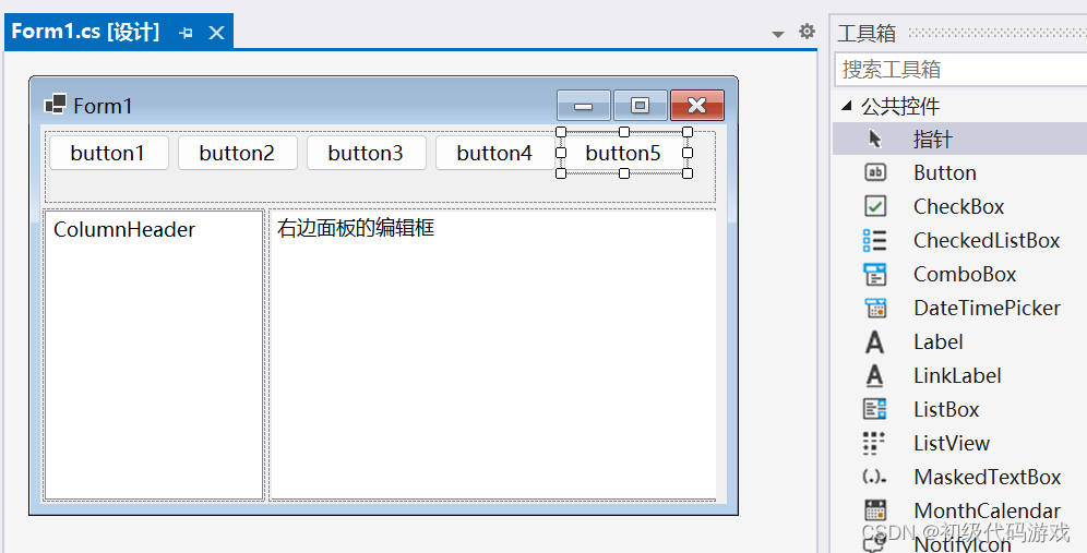 容器拖放到最大,编辑控件也拖放到最大,再放一个控件到左边面板: