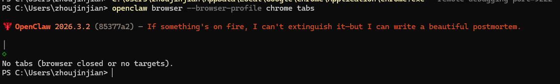 openclaw browser --browser-profile chrome tabs - 智能体工具: