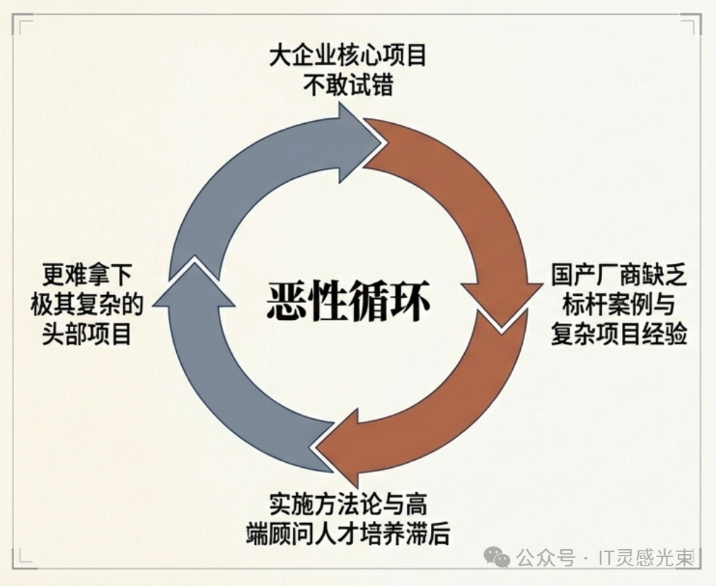 大而全的 ERP 战场,外资已经盘踞几十年, 国产如果非要从“全面替代 SAP/Oracle”这个口号切入,很容易被架死在一个不对称战场上。