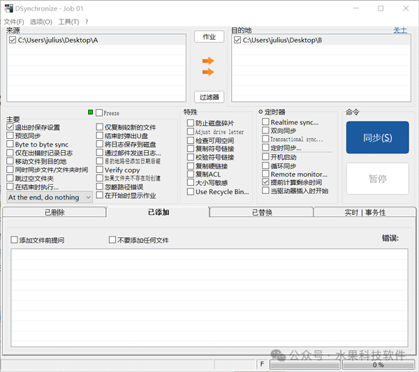 这是一款轻巧实用的专用文件同步工具,可在主窗口同步两个及以上文件夹,并支持创建包含与排除过滤器。