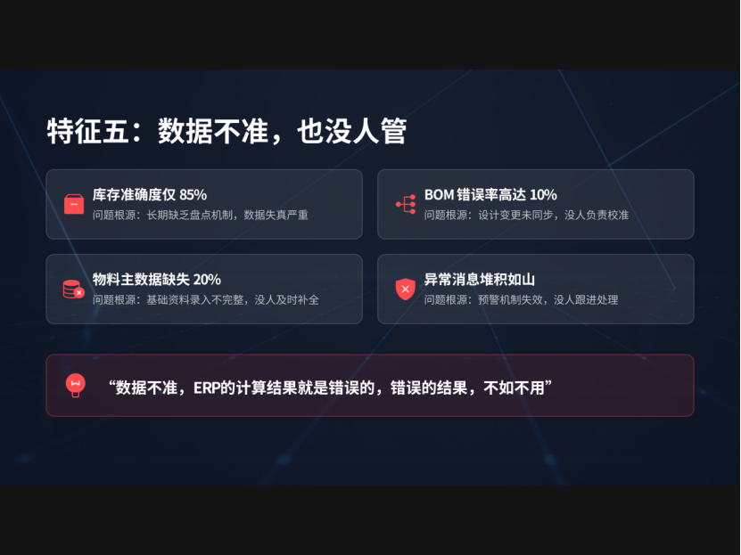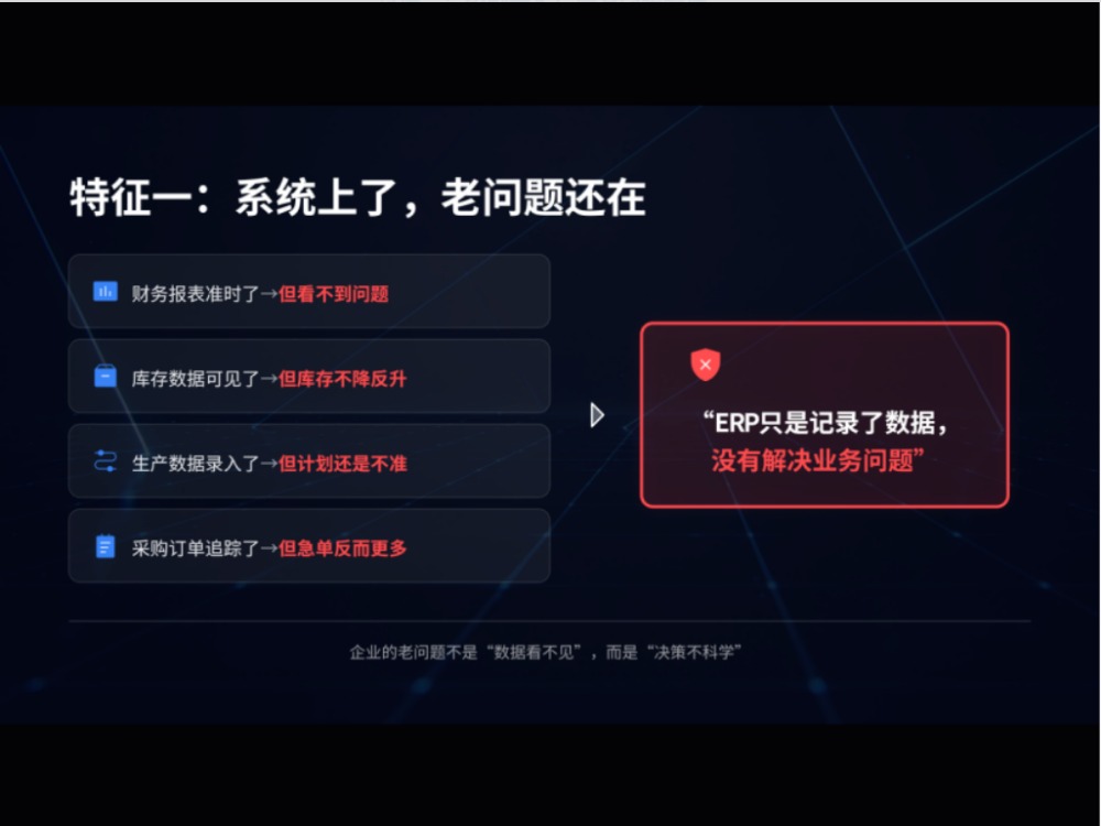 自检清单特征一:系统上了,但老问题还在ERP只是记录了数据,没有解决业务问题。