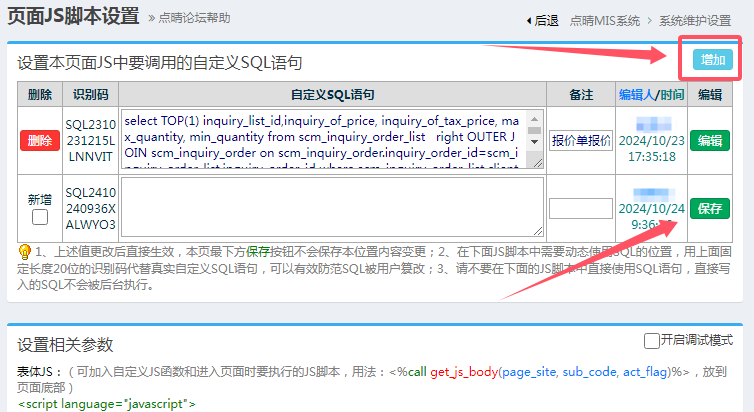 :通过JavaScript能否直接调取点晴MIS系统后台SQL Server表中的数据源?![]() JavaScript脚本是在用户电脑浏览器端执行的代码,如果用户电脑端能够直接通过JavaScript脚本读取服务器上的SQL数据源,这就麻烦大了,所以是肯定不可能允许JavaScript脚本直接读取服务器端SQL数据源的。但点晴MIS系统零代码开发助手中的确提供了JavaScript脚本调取服务器端SQL数据源的功能,并且能够保证访问的安全性,详情参见教程:
