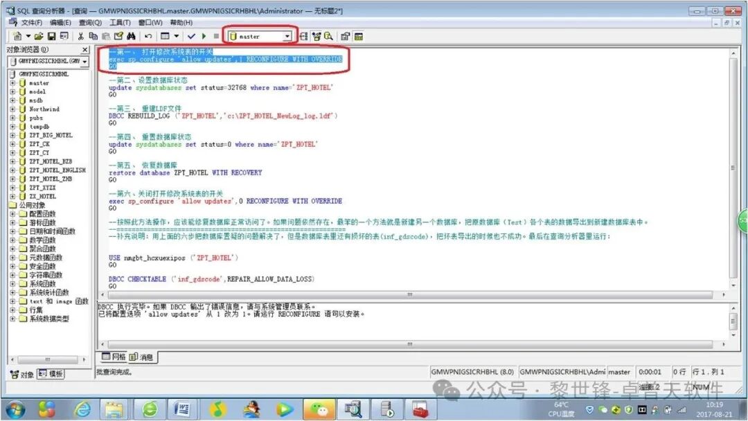 SQLSERVER数据库置疑的修复,用SQL语句修复置疑数据库