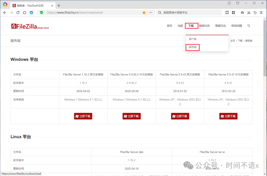 Filezilla有两个官网(中文和英文),根据自己需求选择下载: