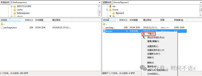 5. 在右下方“远程站点”窗口中,右键单击待下载的服务器文件,选择【下载】,即可将文件下载到本地。