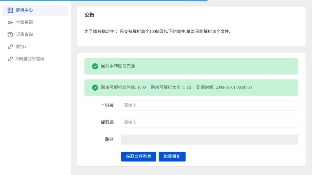▎网站介绍:一个百度小文件公益解析,支持解析单个 100M 及以下的文件,单次只能解析10个文件,无需登录注册,打开即用。