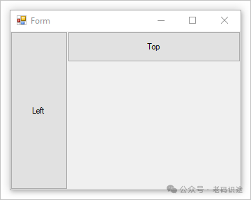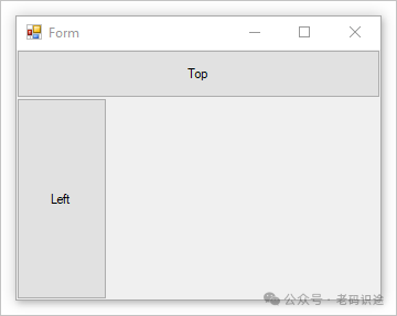 如果控件的 Z-order 倒置,停靠在左侧的控件将拥有更多的初始可用空间。 该控件使用容器的整个高度。 停靠在顶部的控件具有较少的水平空间。