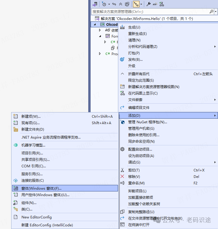 最早发明计算机主要是用于科学计算,利用计算机的高速运算能力代替人工计算以提高效率,应用范围主要集中在科学工作者以及专业从业人员那一小撮人群,那时侯的使用者主要关注数据,通常使用控制台操作计算并显示结果。而真正的让计算机由高端产品走进大众视野,则要从GUI程序的出现开始,它让程序从枯燥刻板的黑窗口进入到图形化时代,实现了一次划时代的飞跃。在软件发展历程中,Windows窗体编程占据着非常重要的地位,它不仅拓展了计算机的应用范围与场景,还让人们对计算机产生了非常浓厚的兴趣,进而衍生出了更多的生态与产业。到今天为止,各种各样的编程形式层出不穷,如Web,Android,Windows Forms,WPF等等,都是GUI图形化编程的不同形态。今天我们主要讲解的是基于.NET的Windows窗体编程,仅供学习分享使用,如有不足之处,还请指正。 ![]() 概述创建Windows窗体应用打开Visual Studio,点击“创建新项目(N)”打开创建新项目向导页面。 ![]() 在打开的“创建新项目”向导页面,选择“Windows窗体应用”项目模板,它包含两个模板:一个基于.NET的Windows窗体应用模板,一个是基于.NET Framework的Windows窗体应用模板。在此我们选择第一个,然后点击“下一步”,打开“配置新项目”对话框。 在“配置新项目”对话框,输入项目名称,如Okcoder.WinForms.Hello,以及项目保存位置,然后点击“下一步”,打开“其他信息”对话框。 ![]() 在“其他信息”对话框中,选择应用程序目标框架,在此默认选择“.NET8.0(长期支持)”,也可以通过右侧的下拉箭头进行修改,然后点击“创建”按钮 ![]() 应用程序创建成功后,在Visual Studio中,主要包含4个重要组成部分,分别如下所示: