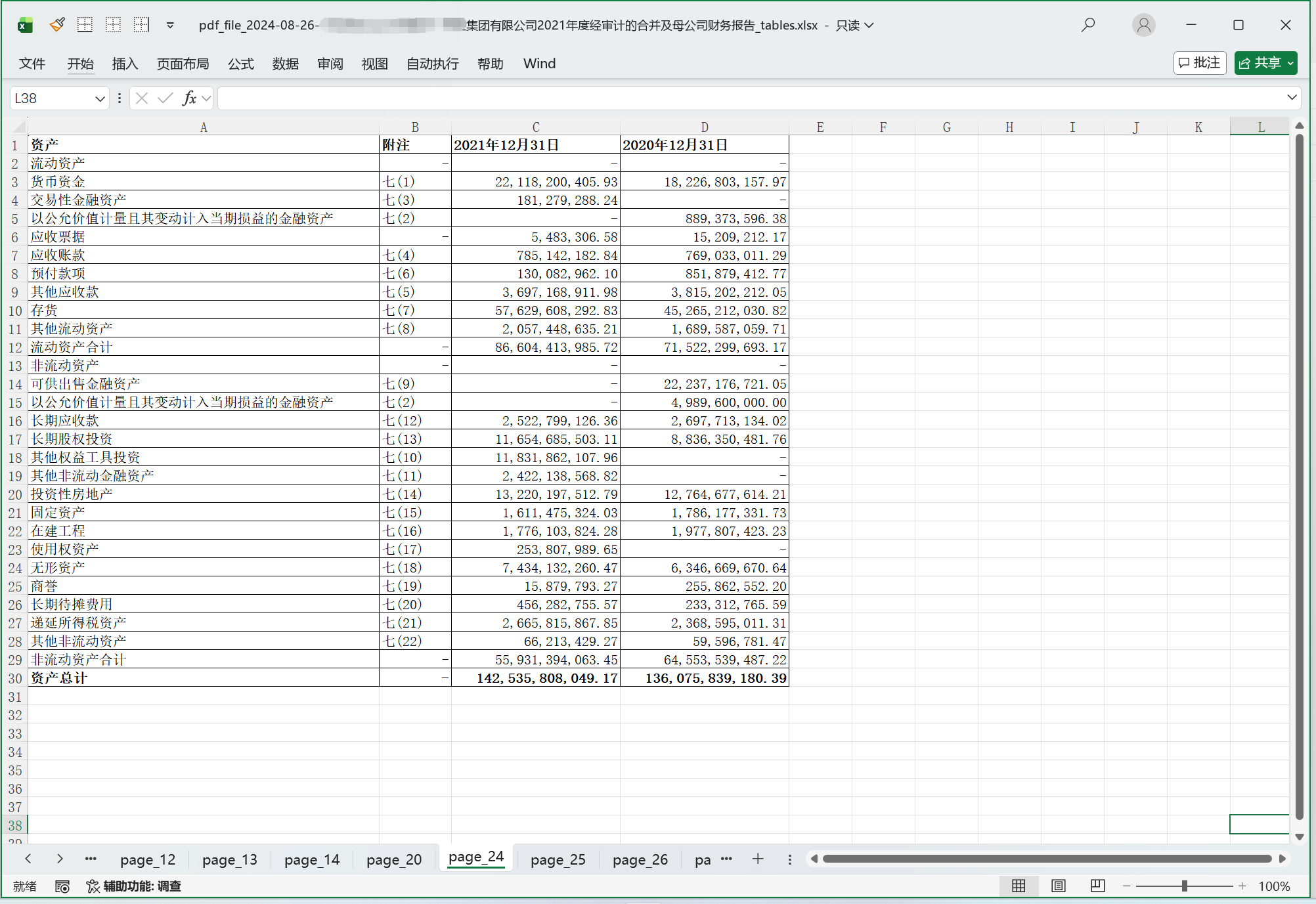 ▲审计报告 - 合并资产负债表的第一页
