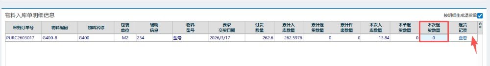 然后出现如下图所示页面,点击查询。选好对应的物料信息,勾上对应的退货数量,点击下方的“提交拣货数量”: 填好物料并确认退货数量之后,点击“采购单退货确认”完成操作。 ![]() 点晴模切ERP更多信息:https://moqie.clicksun.cn,联系电话:4001861886 该文章在 2026/3/26 14:34:16 编辑过 |