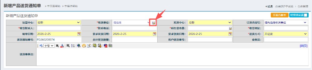 操作步骤:仓库管理——物料出库管理——销售出库管理——新增送货通知单;