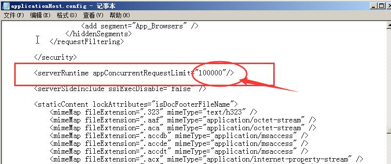 2.  调整IIS 7的appConcurrentRequestLimit设置