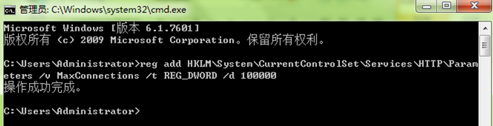 注册表设置命令1(将最大连接数设置为10万):