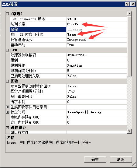 1、应用程序池(Application Pool)的设置:
