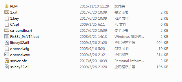 6.完成之后将看到server.pfx文件。上传到服务器硬盘上。