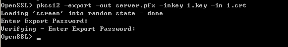 4.安装之后打开bin目录下的openssl.exe软件,输入命令 pkcs12 -export -out server.pfx -inkey Private.key -in Certificate.crt