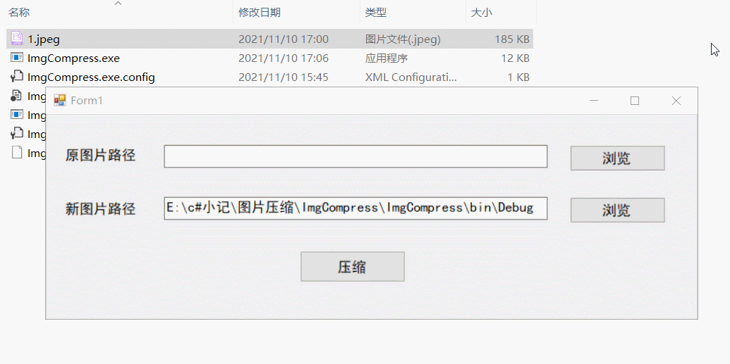 private void btnCompress_Click(object sender, EventArgs e) {     ImgCompress(10L);     ImgCompress(50L);     ImgCompress(70L);     MessageBox.Show("成功"); }