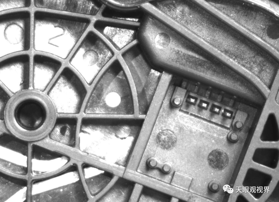 如下图,识别左边大的圆孔:  read_image (Image, 'E:01.JPG')get_image_size (Image, Width, Height)dev_open_window (0, 0, Width/2, Height/2, 'black', WindowHandle)rgb1_to_gray (Image, GrayImage)gen_circle (ROI_0, 541.5, 141.5, 151.539)reduce_domain (GrayImage, ROI_0, ImageReduced)threshold (ImageReduced, Regions, 115, 255)boundary (Regions, RegionBorder, 'inner')dilation_circle (RegionBorder, RegionDilation, 2.5)edges_sub_pix (ImageReduced, Edges, 'canny', 1, 20, 40)*对检测的边缘进行分割,识别线或者圆'lines_circles',segment_contours_xld (Edges, ContoursSplit, 'lines_circles', 5, 5, 8)count_obj (ContoursSplit, Number)dev_open_window (0, 0, Width/2, Height/2, 'black', WindowHandle)dev_update_window ('off')for i := 1 to Number by 1    *选择轮廓并根据特性确定是否拟合圆:* Attrib = -1 线段 0 椭圆 1圆    select_obj (ContoursSplit, Objectselected, i)    get_contour_global_attrib_xld (Objectselected, 'cont_approx', Attrib)        fit_circle_contour_xld (Objectselected, 'ahuber', -1, 2, 0, 3, 2, Row, Column, Radius, StartPhi, EndPhi, PointOrder)        *这里会生成大量的拟合圆,通过添加条件,选取自己需要的圆,这里        *条件为半径,(可以自己注释条件,查看所有拟合圆结果 )        if(Radius<73 and Radius>70)            gen_circle_contour_xld (ContCircle, Row, Column, Radius, 0, rad(360), 'positive', 1.0)