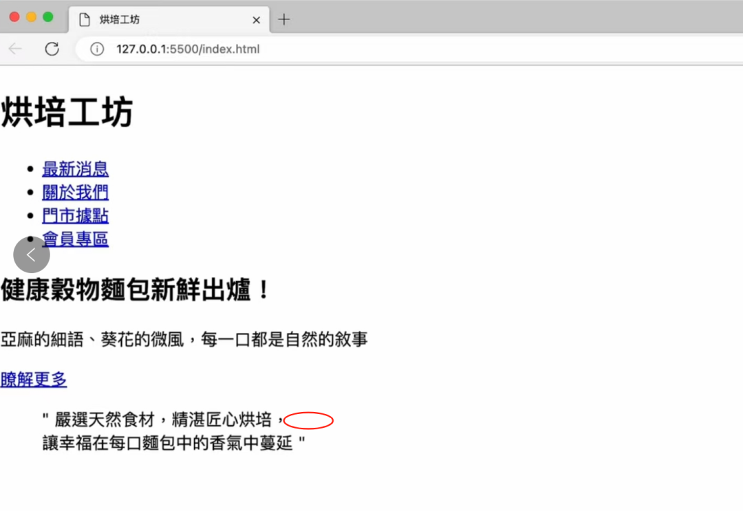 由于导航栏的前方不需要任何数字编号,这时选择用<ul>标签更为妥当。<ul>标签的用法和<ol>相同,唯一差异就是前方没有数字编号,而是一个小黑点。