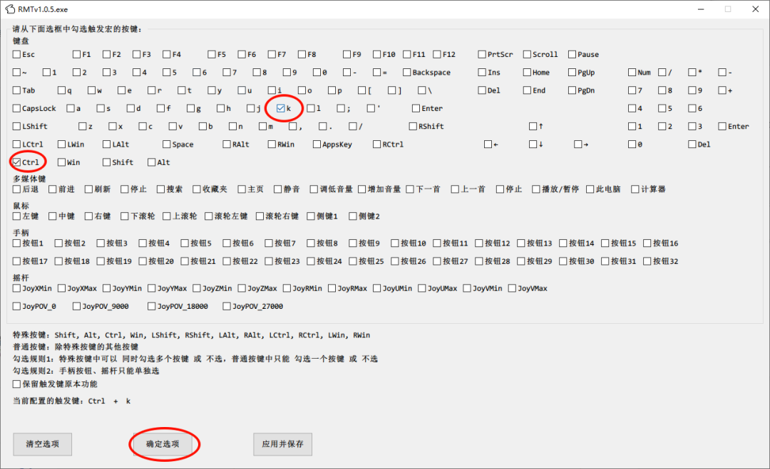 举个例子,假如我们需要按CTRL+K了以后实现自动按某些按键的功能,可以这么进行设置: