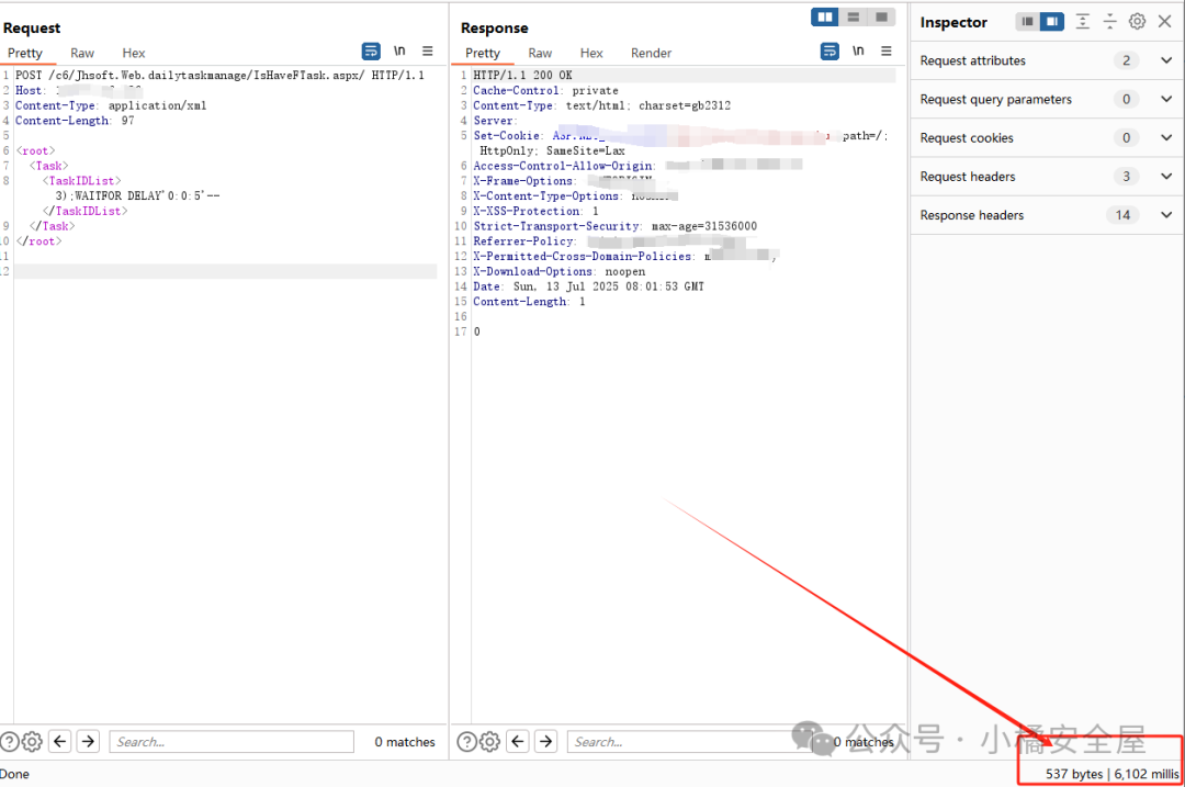 <root>  <Task>    <TaskIDList>3);WAITFOR DELAY'0:0:5'-- </TaskIDList>  </Task></root>