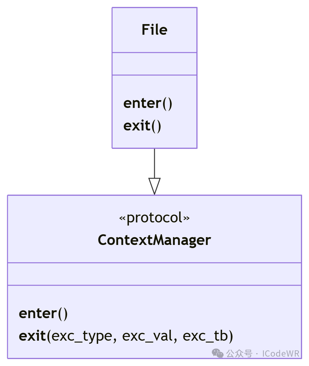 __enter__():进入上下文时调用,返回资源对象__exit__():退出上下文时调用,处理清理和异常class ManagedResource: