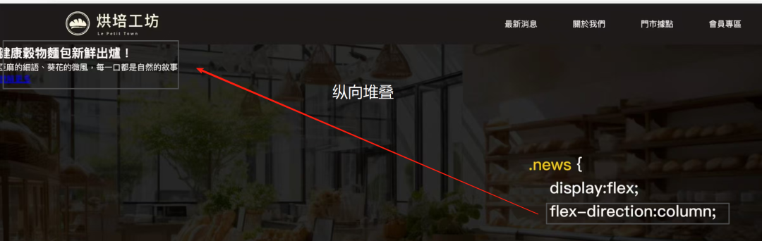 如果要维持原本的纵向堆叠,这就轮到我们的flex-direction登场了。只需在CSS中指明flex的方向为column(栏)