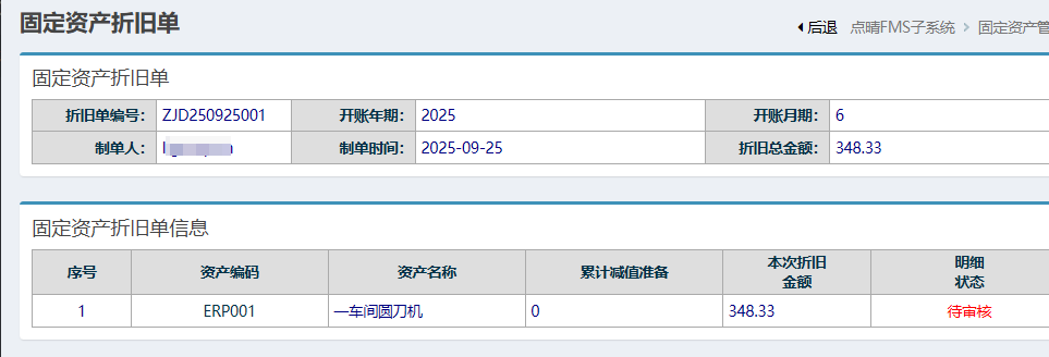 [点晴模切ERP]点晴FMS-新增固定资产折旧单-操作流程