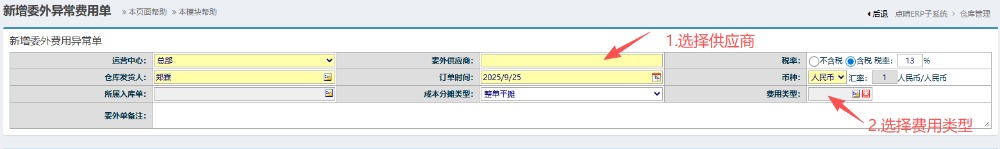 2.进入界面后,选择对应供应商以及费用类型