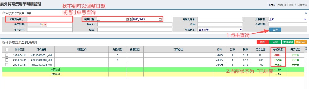 :点晴ERP-委外费用异常单-操作流程