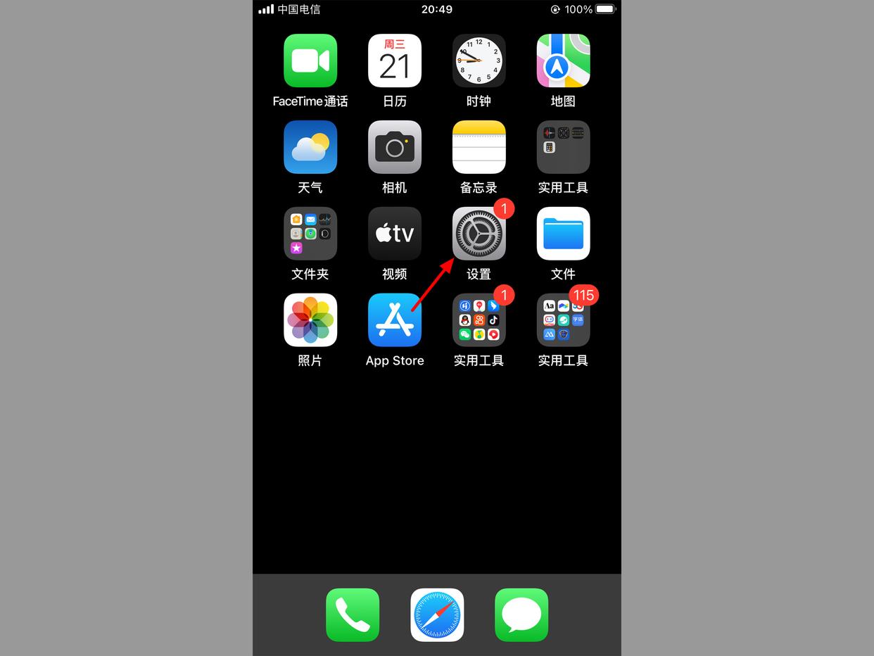 1、在苹果手机桌面,打开【设置】。