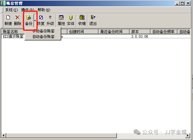 三、金蝶KIS专业版账套备份