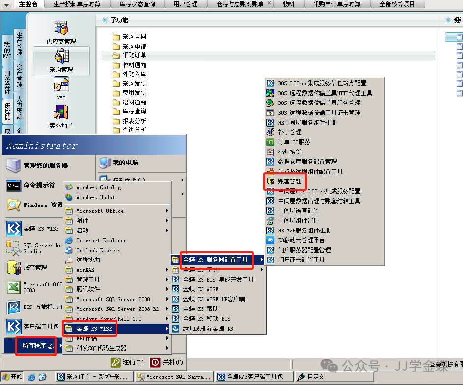 1、点【开始】-【程序】-【金蝶K3WISE-【金蝶K3服务器配置工具】-【账套管理】