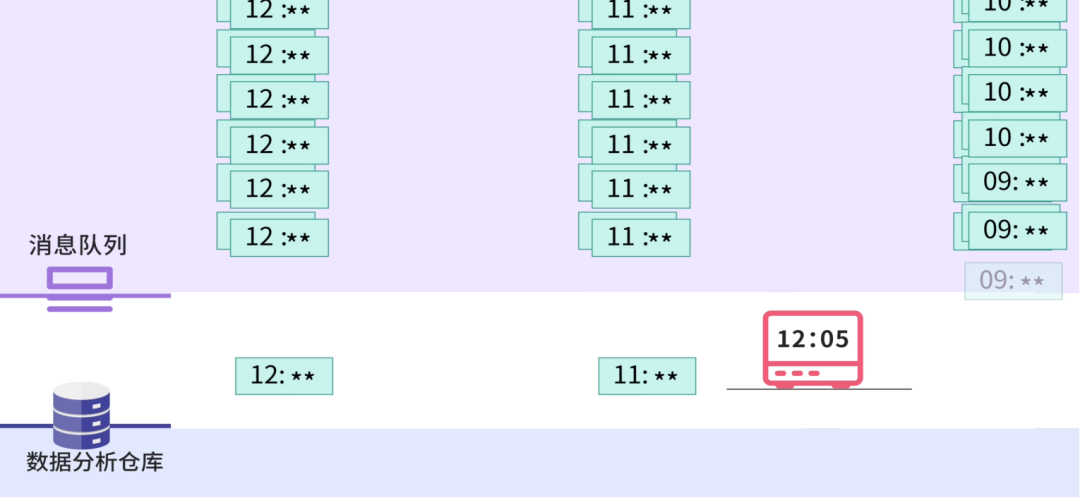 消息队列就像一个快递中转站。数据库变化的消息先发送到这个中转站,然后同步数据的程序从中转站取出数据并写入到数据分析仓库中。