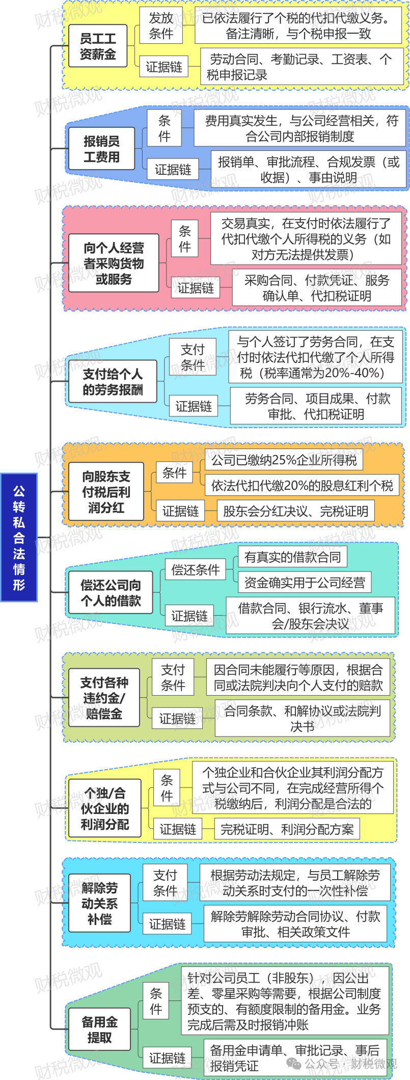 金税四期+银税联网下,公转私行为一直都是税局严查重点。但若公转私备注清晰、证据链完整、符合税法逻辑的资金流转,税务局都懒得来查你!工资薪金是合法的税前扣除成本,但必须有据可查。备注到月份、到性质,与个税申报记录、劳动合同、考勤记录对应,形成证据闭环。比如,报销张三XX月差旅费、报销李四XX月办公用品采购等报销的核心在于背后的发票和业务真实性。详细的备注直接关联到具体的报销人、时间、事项和发票,可以让公司的内部审批流程、报销凭证和资金流向形成一个证据链。比如,支付XX项目钢材货款(合同号:HT-2024001,非必要项)向个人采购,对方往往无法开具发票,这本身就是税务风险点。清晰的备注,尤其是注明合同编号,能立刻与采购合同、入库单、付款审批等关联起来,证明业务的真实性。这是税局紧盯的重灾区。公司利润在缴纳25%企业所得税后,税后利润分红给个人股东,还需代扣代缴20%的分红个税。但如果你用借款等名目转账,在纳税年度终了后既不归还又未用于经营,税局将直接视同分红,要求补缴20%个税和罚款。支付给非员工的个人劳务报酬,公司负有法定的代扣代缴个税义务。备注中清晰注明项目名称和款项性质,可以与《劳务合同》、项目成果、代扣个税记录等相互印证。比如,预支张三XX年XX月杭州出差备用金,切勿直接写借款、日常费用等。备用金是发给员工用于公司小额零星支出的,备注必须明确是预支、用于公务出差,并且有额度控制和报销时限。注意,这将其与股东借款严格区分开,避免被视同分红。业务结束后,需及时取得发票冲销借款,否则可能被认定为个人所得。比如,因合同纠纷等原因向个人支付的赔偿金,是合法的税前扣除项目,但前提是支付依据充分。清晰的备注,结合双方签订的《和解协议》或法院的《判决书》、《调解书》,可以证明该笔支出的真实性和合法性,避免被认定为变相福利。