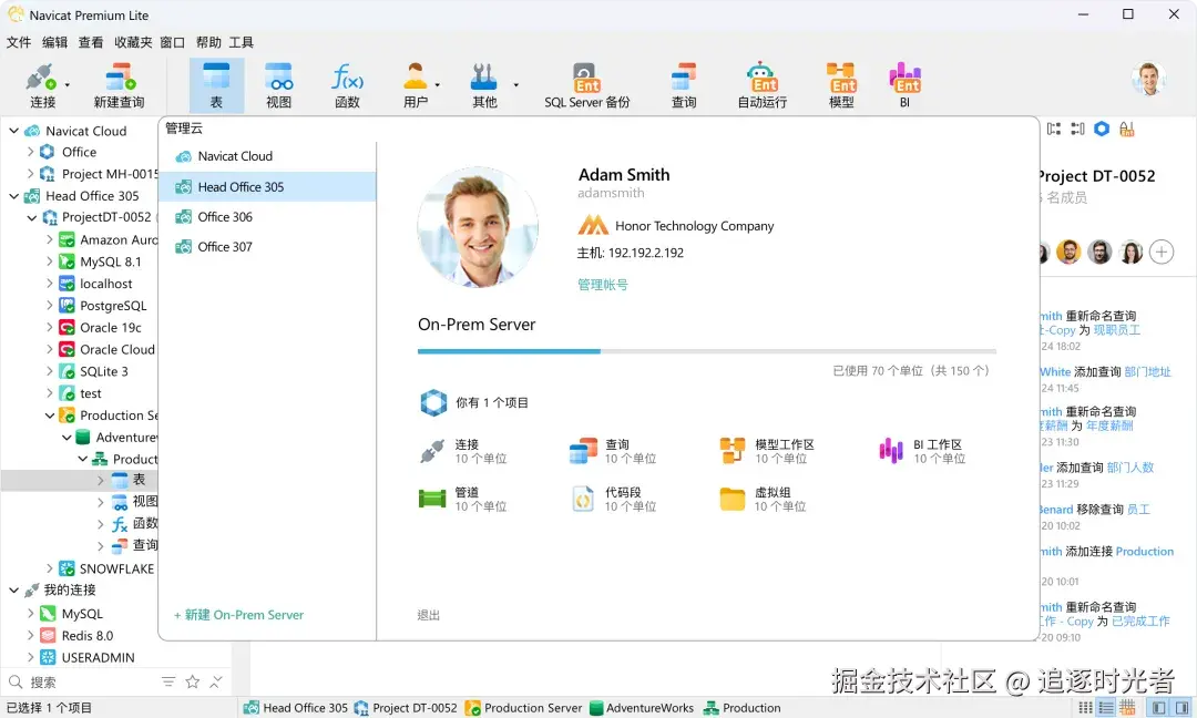 Navicat Premium Lite 是 Navicat 的精简免费版本(每家机构最多5个用户),支持跨平台使用,它包含了用户执行主要的基本数据库操作所需的核心功能。它允许你同时连接到各种数据库平台,包括 MySQL、PostgreSQL、SQL Server、Oracle、MariaDB,以及 Redis 和 MongoDB 等NoSQL 数据库,所有这些操作都可以通过一个应用程序来完成。