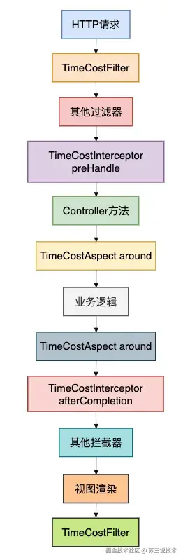 • 注意:afterCompletion即使请求抛出异常也会调用,这确保了耗时统计的完整性。