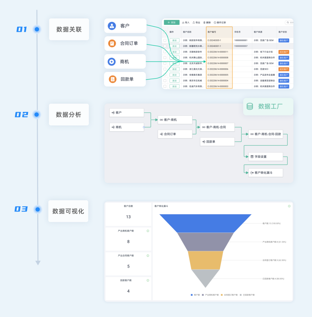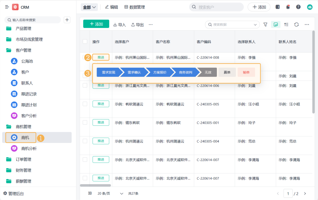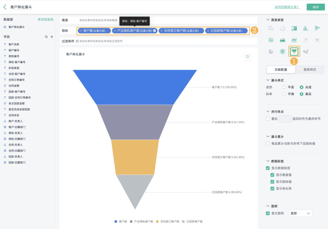 CRM系统不是摆设,数据不上线,你就永远在黑箱操作。  第二步:可视化的漏斗图 数据要看得见。 漏斗图能帮你一眼看到每个阶段的客户量、转化率。 一个成熟的销售团队,每周都要开“漏斗例会”, 讨论的不再是“你忙不忙”,而是: “你现在有多少客户在谈方案?为什么报价阶段掉了30%?” 当销售开始用数据说话,团队的节奏就变了。 第三步:动作跟进机制 看漏斗只是开始,关键是要用它驱动作为。