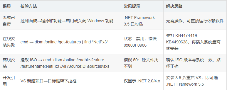 和 .Net Framework 3.5 同领域的主流软件有 Java 和 .NET 6/8,Java 跨平台强,但桌面 GUI 丑到哭;新版 .NET 性能炸裂,可老程序迁移要改代码。相比之下,3.5 的优势只有一条:老代码零改动直接跑,老板省钱,员工省心,缺点是只限 Windows。